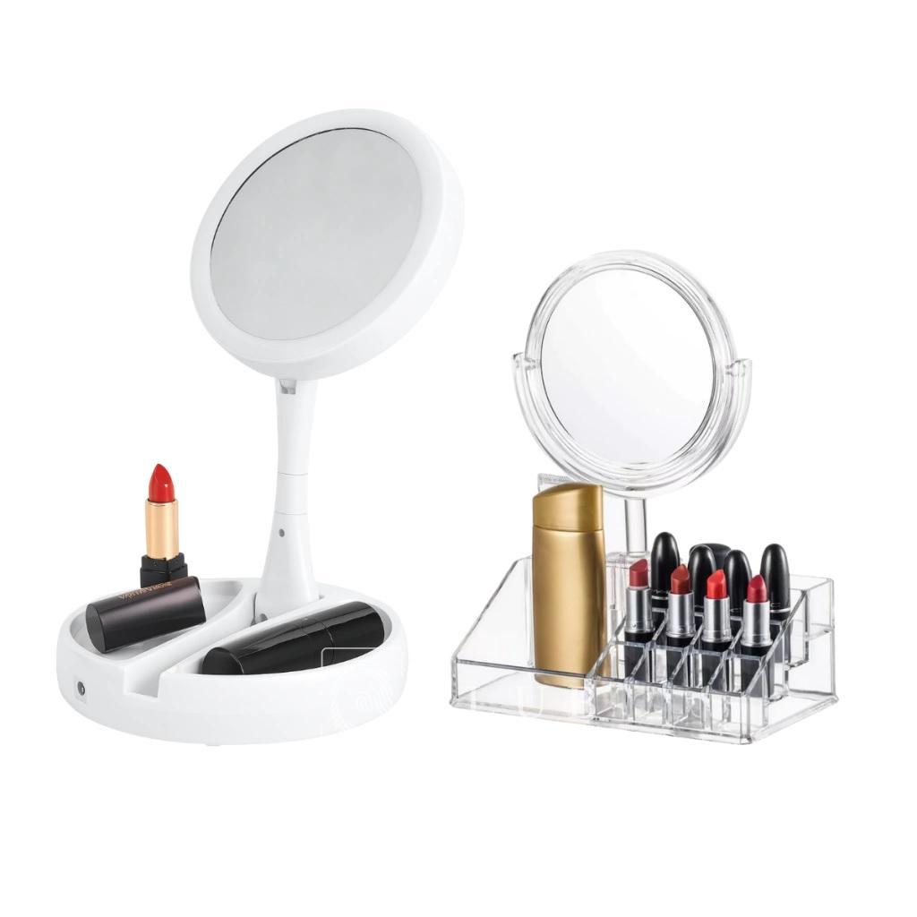 COMBO ESPEJO CON LUZ LED Y ORGANIZADOR DE MAQUILLAJES